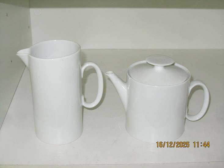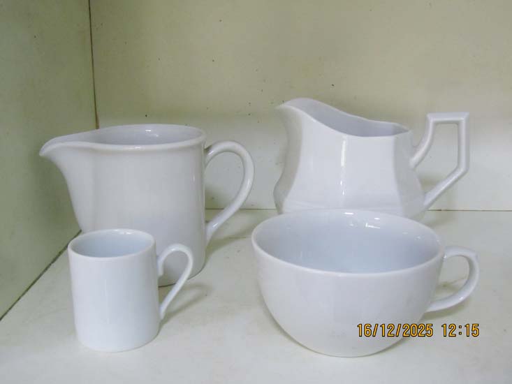 JARRA BRANCA E XÍCARAS CHÁ PORCELANA
