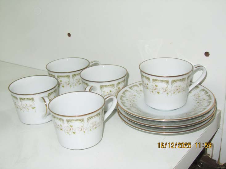 5 XÍCARAS CHÁ FRISO ROSA PORCELANA NORITAKI