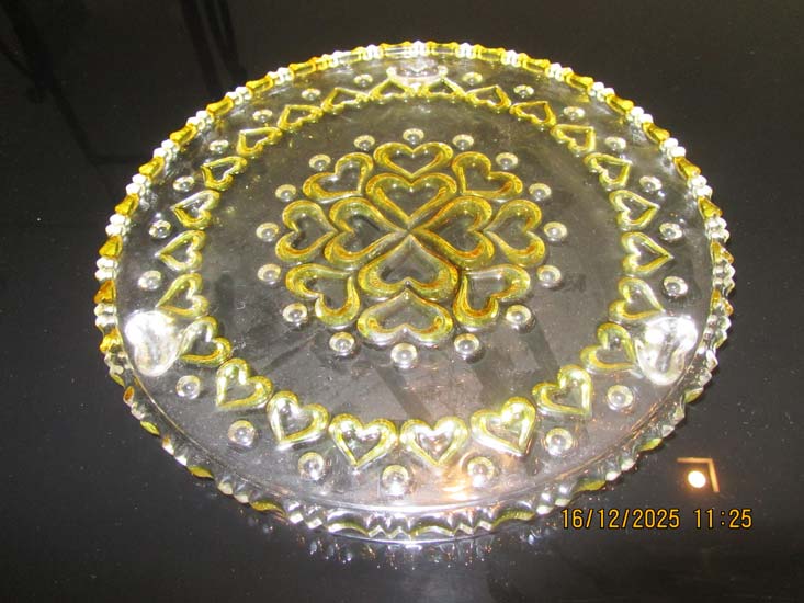 PRATO BOLO CORAÇÕES VIDRO AMARELO