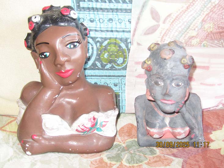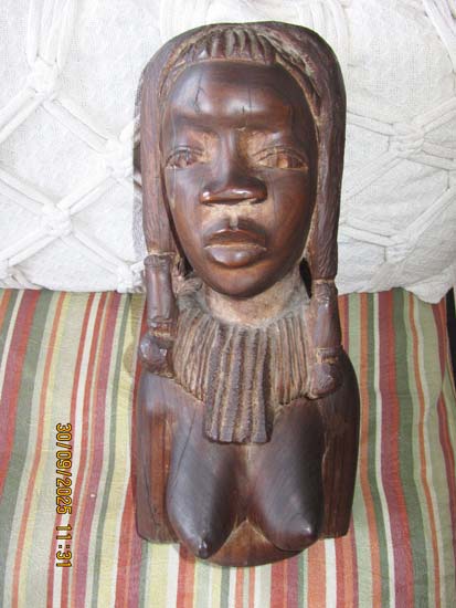 ESTATUETA BUSTO MULHER AFRICANA MADEIRA ENTALHE