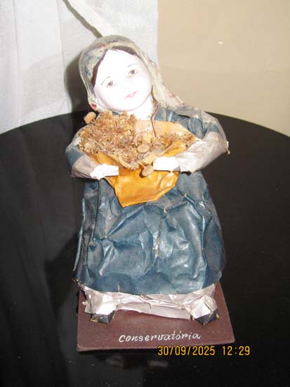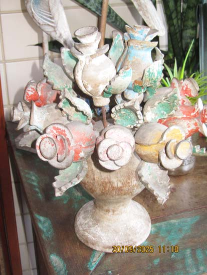 ESTATUETA VASO FLORES MADEIRA ENTALHES COLORIDAS