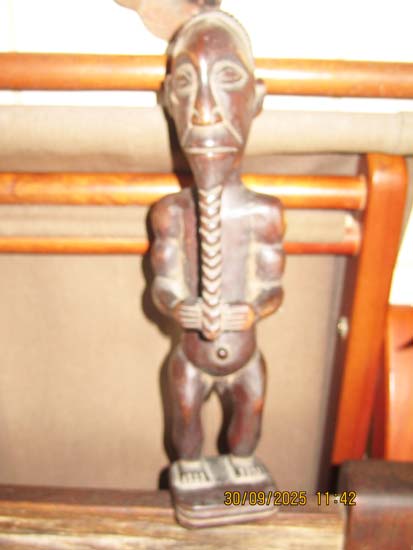 ESTATUETA GUERREIRO AFRICANO MADEIRA ENTALHE ANGOLA