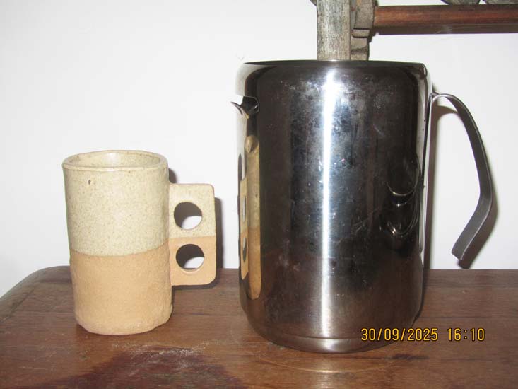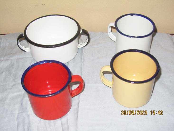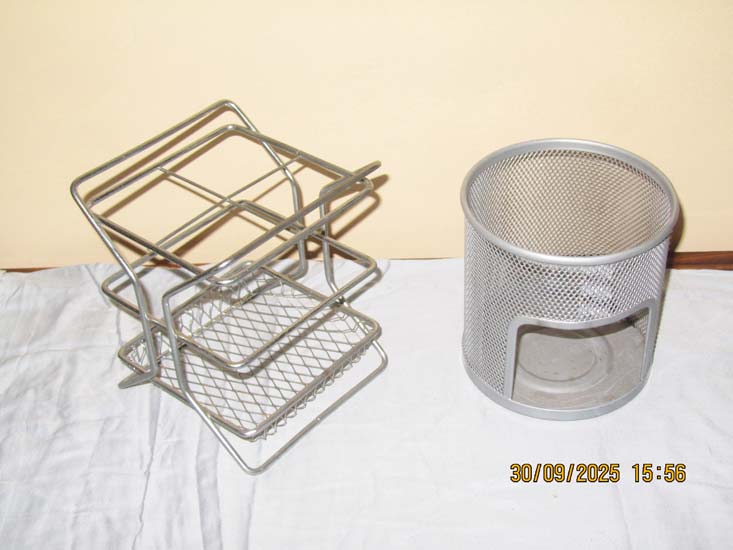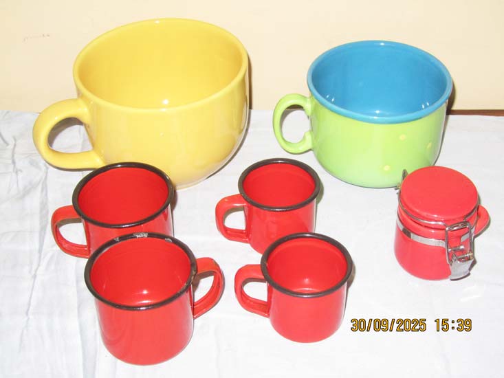 LOTE 2 CANECAS PORC. E CESTA METAL