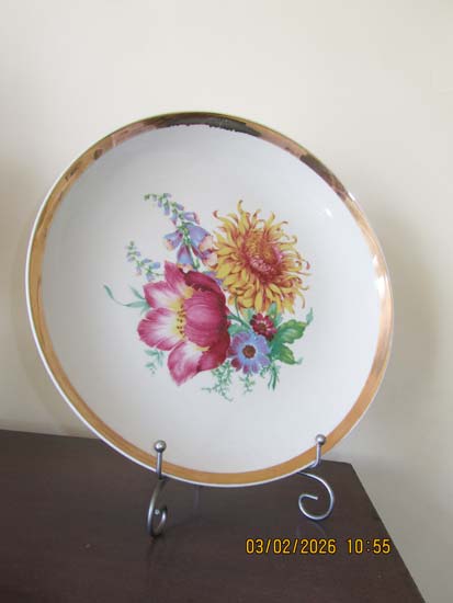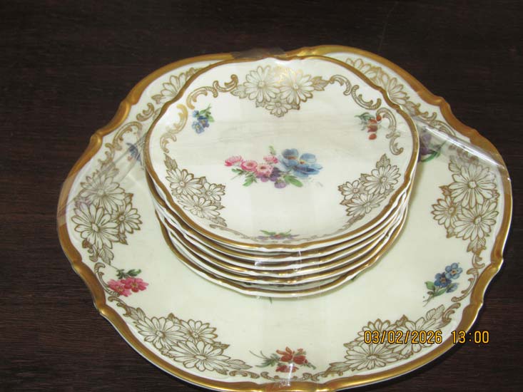 PRATO BOLO FLORES PORCELANA FRISO OURO