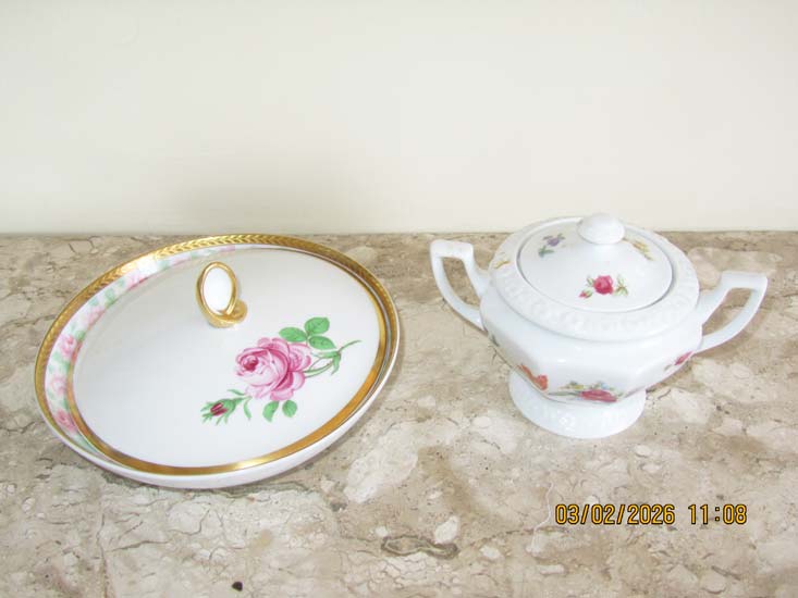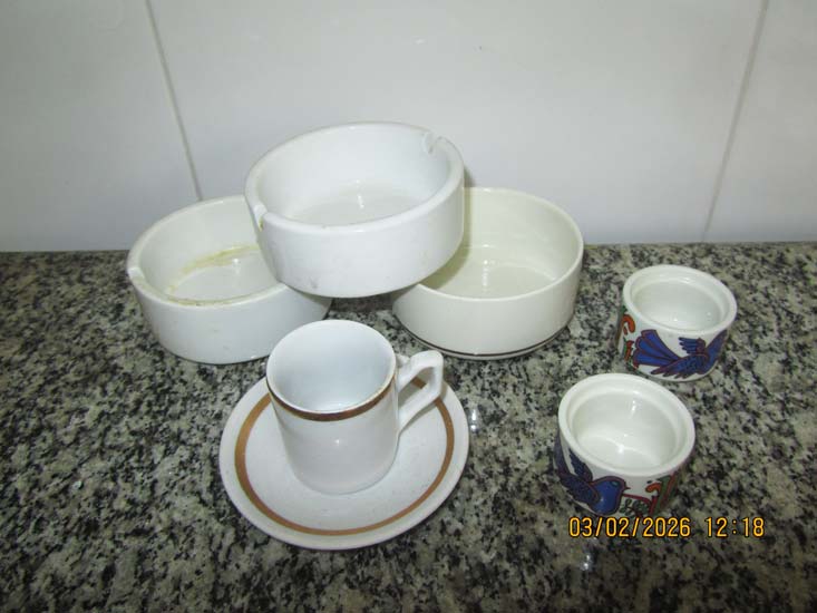 3 XÍCARAS E MANTEGUEIRA PORCELANA