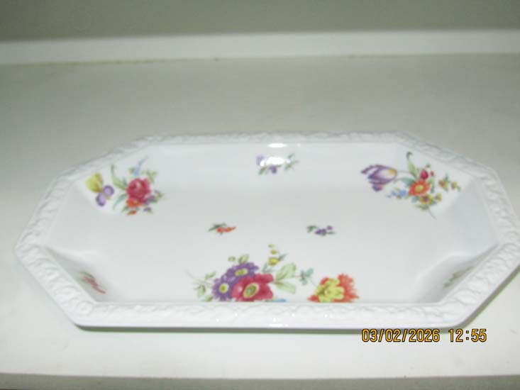 TRAVESSA PEQ. OCTOGONAL PORCELANA FLORES