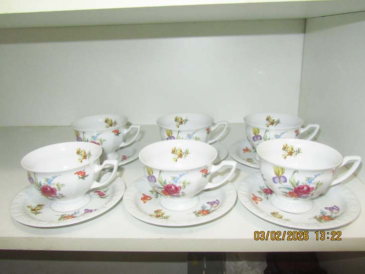 6 XÍCARAS CHÁ FLOR PORCELANA