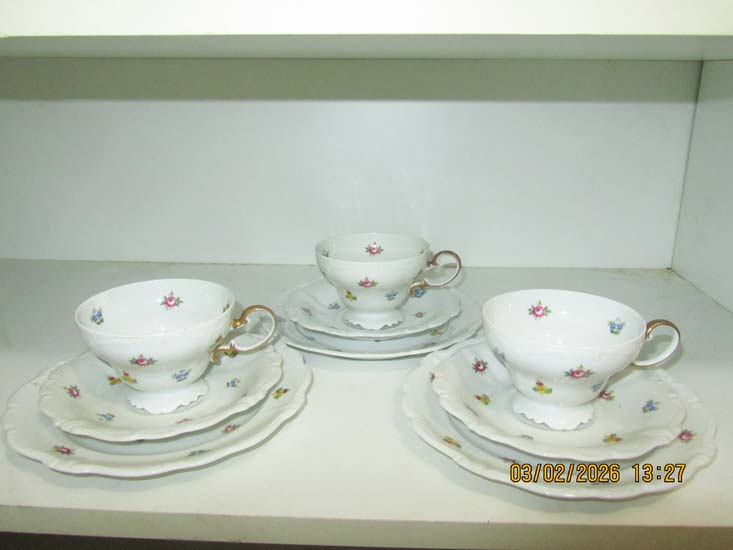 3 XÍCARAS CHÁ E CREMEIRA PORCELANA