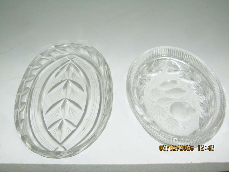 2 PRATINHOS OVAIS VIDRO LAPIDADOS