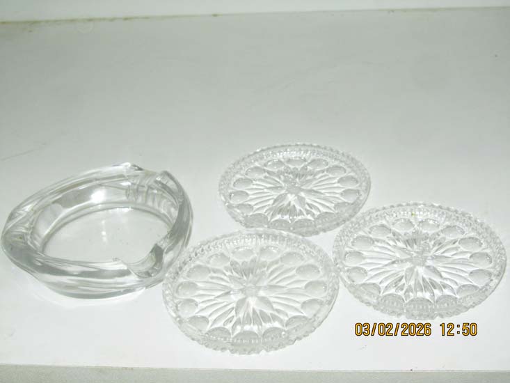 PRATINHO E PORTA GUARDANAPOS VIDRO LAPIDADOS
