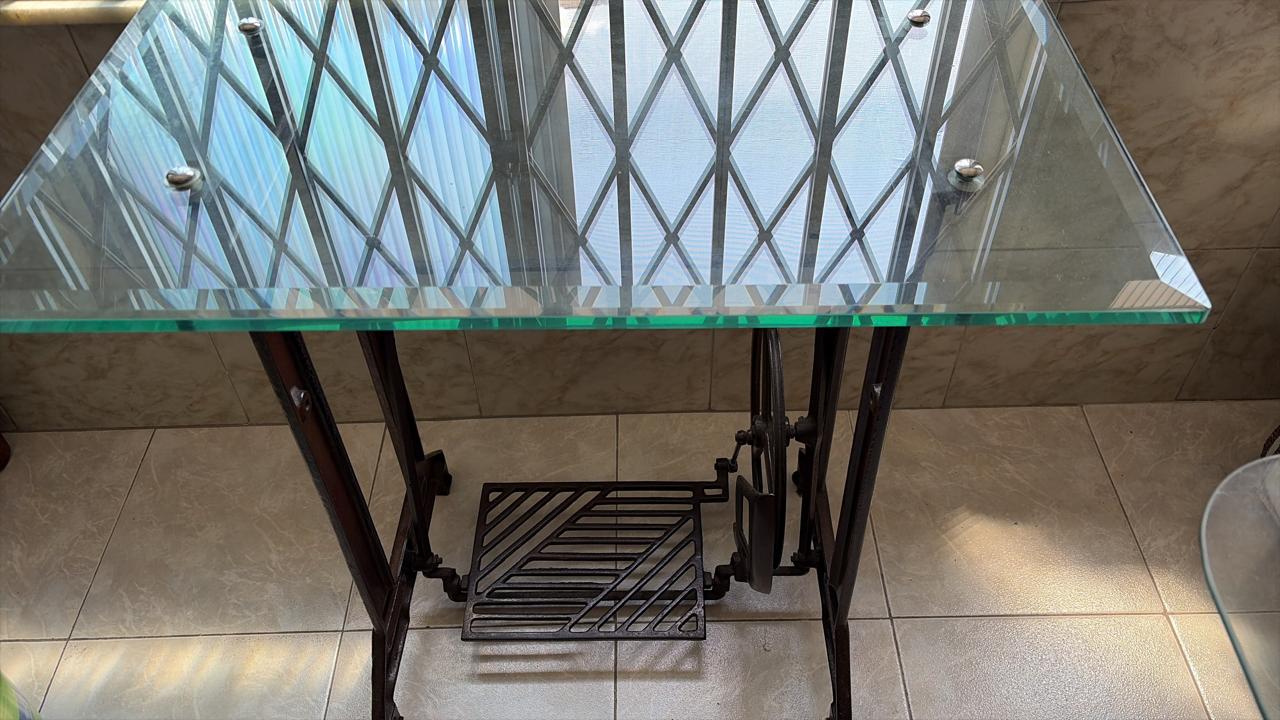 MESA PÉ MÁQUINA COSTURA FERRO TAMPO VIDRO (OUTRO ENDEREÇO PRÓX.)
