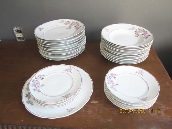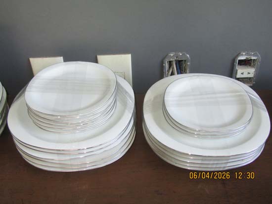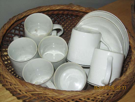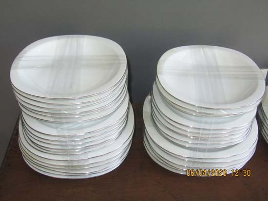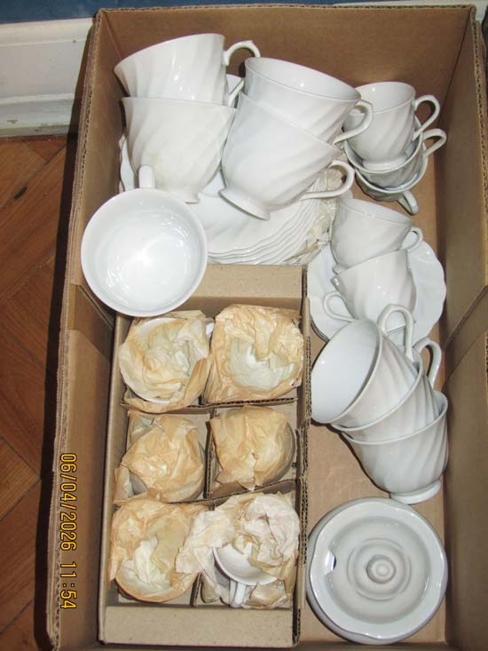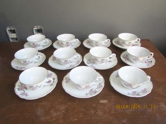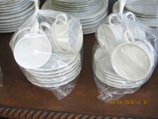 7 XÍCARAS E 3 PIRES PORCELANA FRISO PRATA