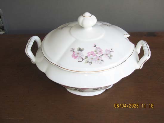 SOPEIRA E TRAVESSA FLOR ROSA PORCELANA