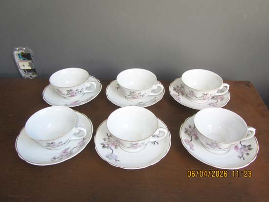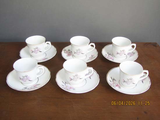6 XÍCARAS CHÁ FLOR ROSA PORCELANA