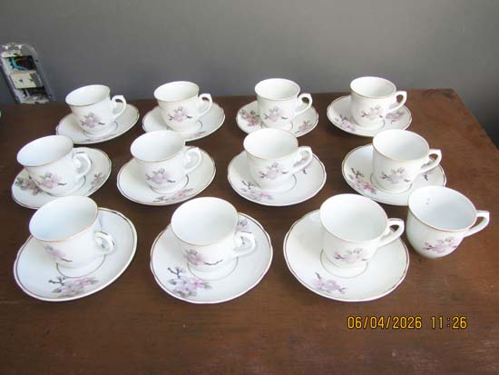 CONJUNTO CAFÉ FLOR ROSA PORCELANA
