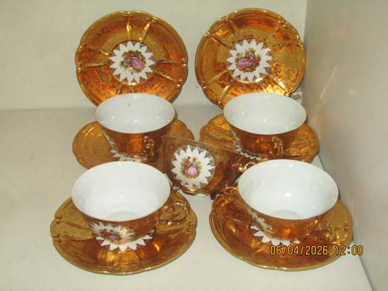 7 XÍCARAS CAFÉ FRISO OURO PORCELANA
