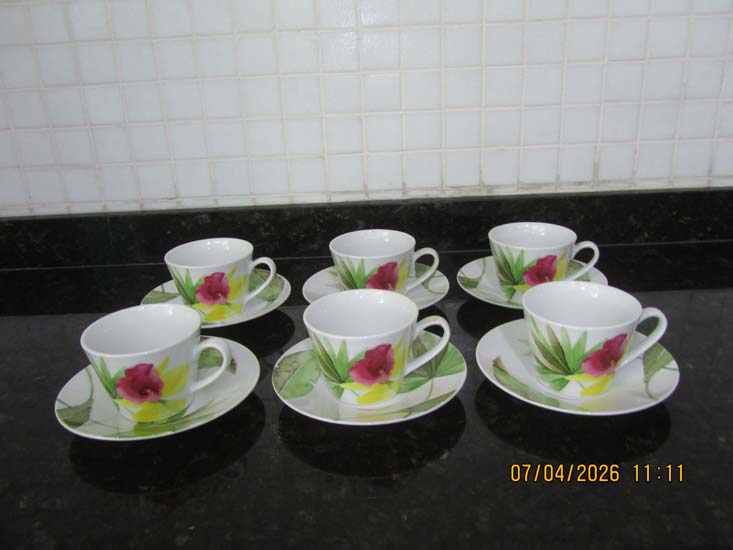6 XÍCARAS CHÁ ORQUÍDEA PORCELANA BR.